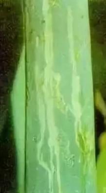 生態習性:雌蟲產卵於蔥管內壁或組織,亦會以產卵管刺破蔥葉表皮,以口器吸食汁液。幼蟲孵化後即在葉肉內潛食危害,使葉表面成白色短條狀或曲線形,故又名寫字蟲。老熟幼蟲於土中化蛹。終年均會發生,年發生十餘代,本省南部於二、三月發生較多。 危害狀:被害蔥管呈現白食痕,內留黑色蟲糞,嚴重為害時蔥葉枯萎,全株生長緩慢或萎縮,影響產量。