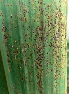 病原生態:筊白銹病主要發生於葉片,尤以成熟葉片較易受感染。銹孢子藉峰傳播而造成新的感染,本病多發生於低溫乾燥劑節,因此3~5月為發病盛期,清明後因梅雨多濕,銹病減輕。本病在茭白筍生育初期即發生,因此幼苗期即須徹底防治。病徵:發病初期葉片上產生針尖狀褪色小斑點,以後病斑逐漸轉為紅色,並向兩端擴大成圓形、橢圓形或近似紡錘形,病斑顏色亦漸轉為紅褐色,後期病斑處破裂,散出紅褐色粉末狀之夏孢子,故病斑處成銹色。多數病斑互相癒合而產生不規則形之大病斑,嚴重時,葉片黃化終至枯萎。