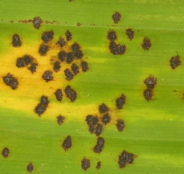 危害部位包括葉片與果實。葉表面出現許多黑褐色至黑色之突起小點,斑點為圓形,直徑約1公厘左右,周圍呈水浸狀。斑點最初在中肋出現而漸擴及於葉片。蕉株抽穗後本病亦可在果實上發生,在香蕉抽穗後2~4個星期開始出現,斑點開始出現於果皮,初期斑點為紅色或棕色,突起於果皮表面,而使果皮粗糙不平,斑點直徑約1公厘,周圍呈暗綠色水浸狀,果實成熟時斑點轉成黑色。