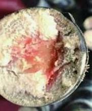 被害蔗苗兩端切口先變紅,以後全部變黑腐爛而不能發芽。病症發展過程中發散類似鳳梨之香味。