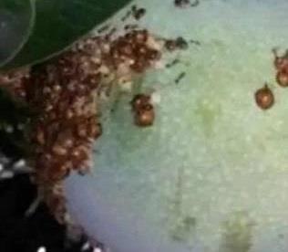 被害植株葉片因葉綠素及組織受破壞,水份被吸收掉,呈現枯黃現象,嚴重者瀕臨枯死邊緣,造成台灣可可椰子空前大災害。