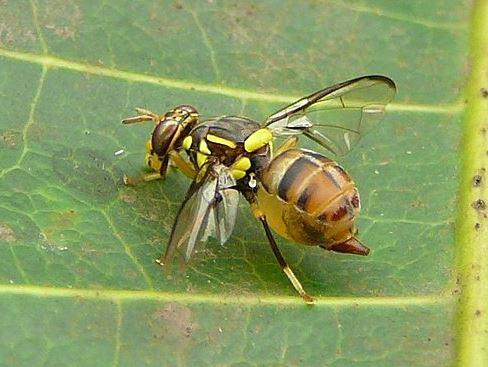 成蟲主要以蚜蟲、介殼蟲、粉蝨、木蝨等昆蟲所分泌之蜜液及植物花蜜為食,甚乃取食植物枝葉損傷流出之汁液或霧水。於早晨8時左右開始飛行至果園中覓食產卵,中午以後則棲息於葉間陰涼處,至下午二點再度飛出活動,夜間則棲息於樹葉或植物叢中,成蟲田間族群以每年4~11月間達最高峰,12月至翌年3月較低。雌蟲羽化後10天即可產卵,卵期一個月以上,平均每日可產30粒,雌蟲產卵以蕃石榴最為喜好,產卵部位以果實中央部位最多。