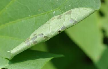 危害狀:本蟲於夏、秋莧菜生長時發生,成蟲為小型蛾類,白天於菜株附近活動,但不取食蔬菜。幼蟲捲食未展開心葉,致被害葉片展開後食痕累累且老化,且易被視為斜紋夜蛾幼蟲危害狀,被害葉無商品價值。